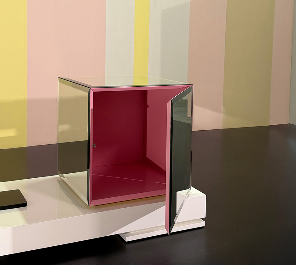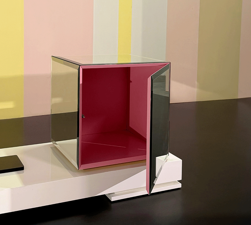 - Finitura: specchio bisellato. Interno laccato opaco.