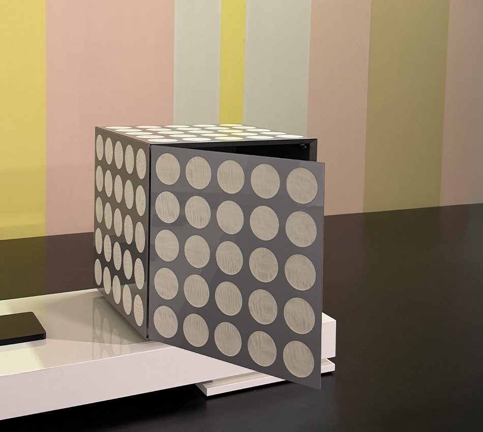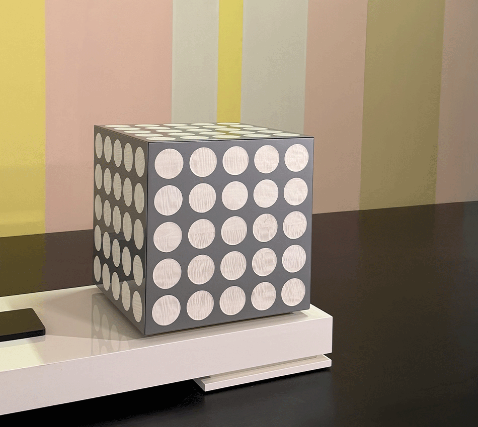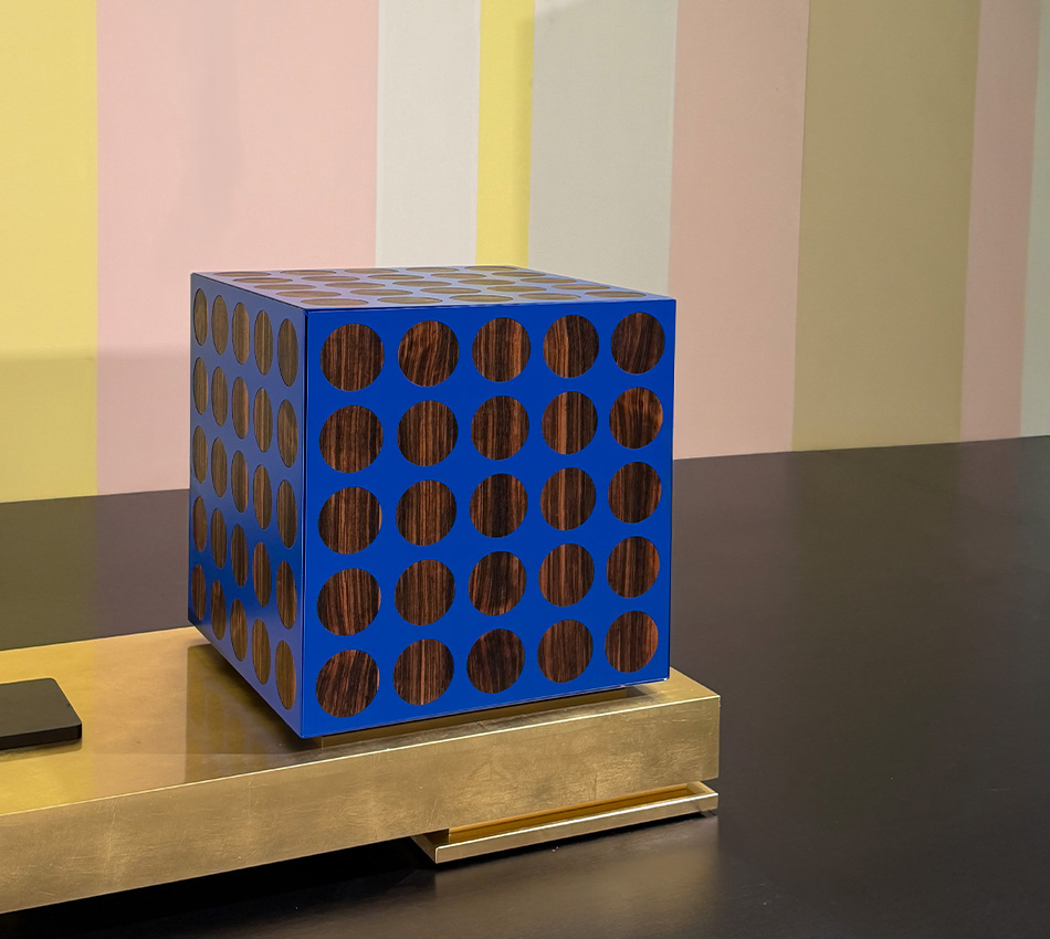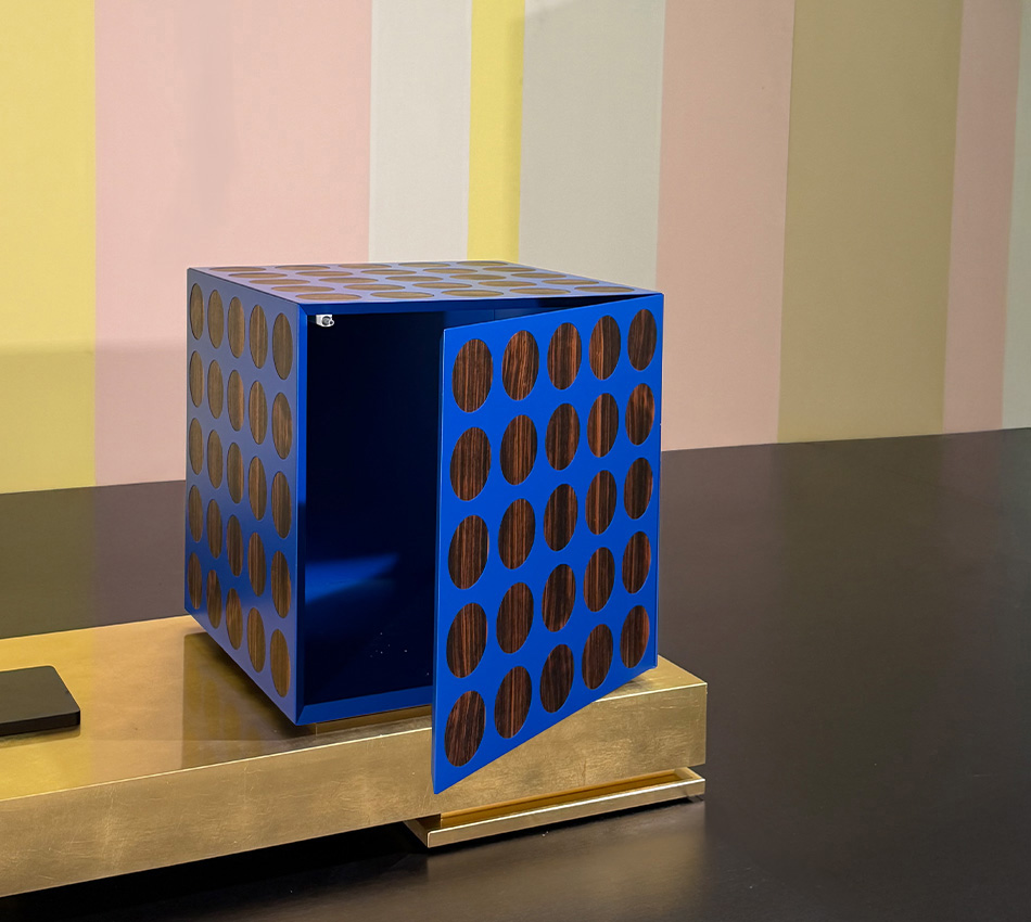 Il Blu Klein, un oltremare saturo e luminoso, la più perfetta espressione del blu, si unisce all’iconico legno nero per eccellenza, l’Ebano, non una semplice essenza legnosa, ma un vero e proprio universo estetico e stilistico. Nella versione argento, la nobilità del metallo, bianco e lucente, si fonde con il candore dell’Acero.